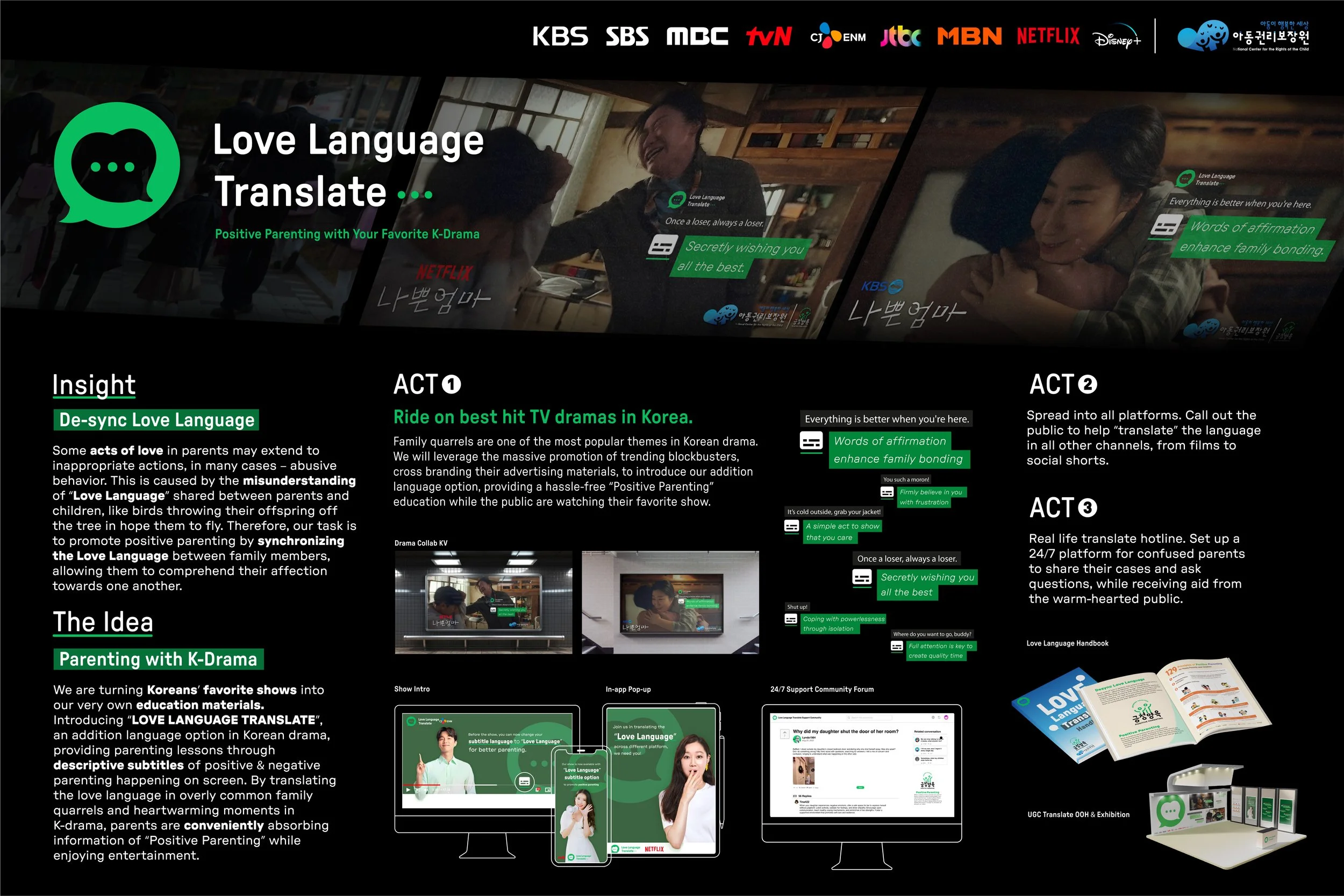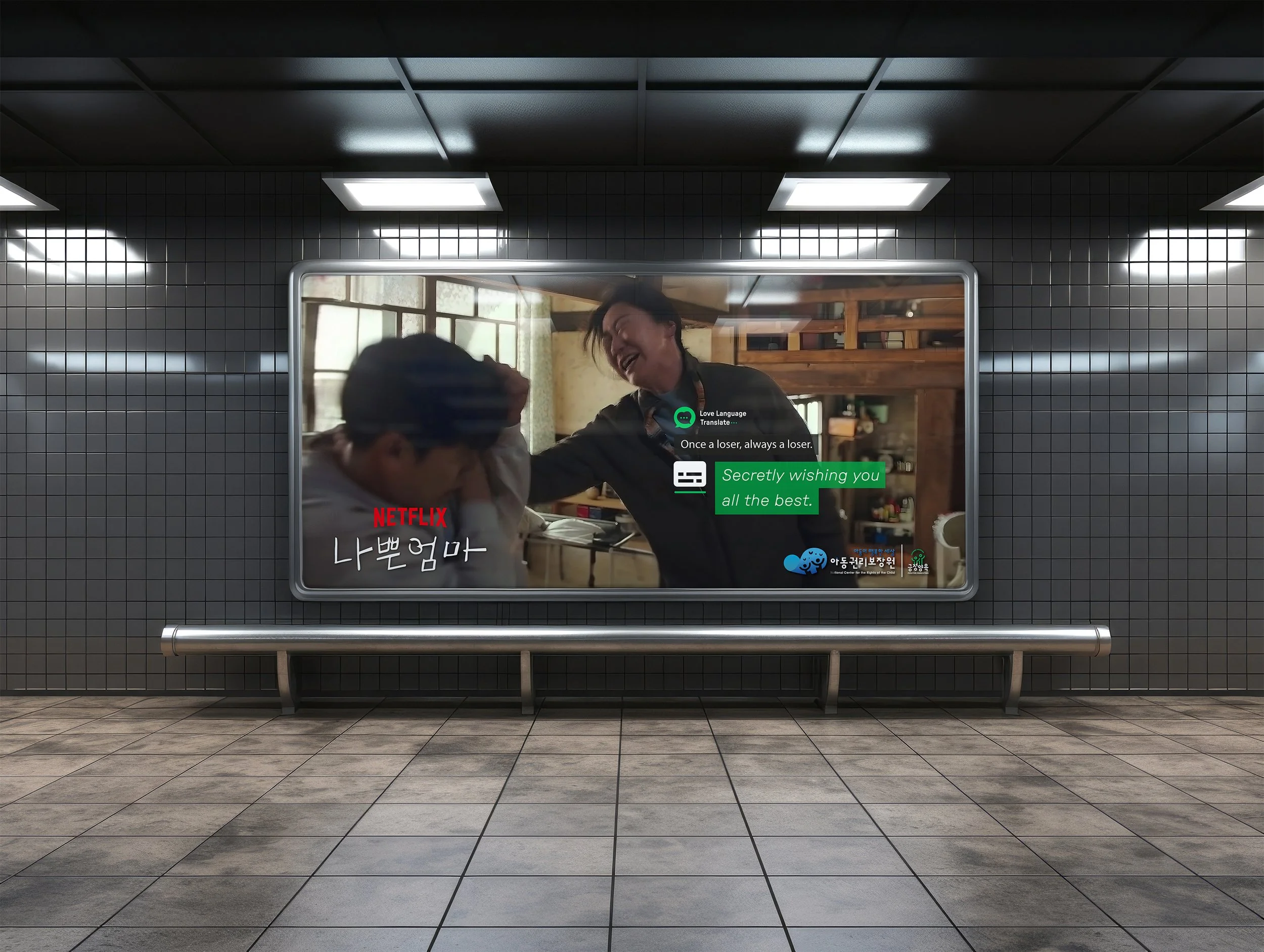 Love Language Translate” transforms Korea’s most beloved K-dramas into a subtle yet powerful positive parenting guide, created for the National Center for the Rights of the Child. Built on the insight that many parental actions are often misunderstood as harsh or controlling, the campaign uncovers a deeper truth. Love is present, but expressed in the wrong language.